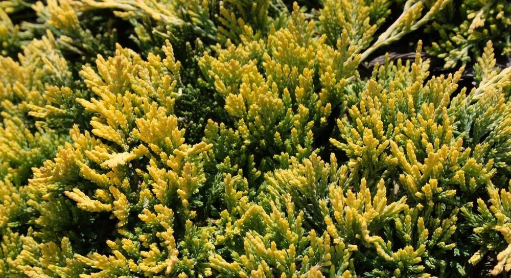 Можжевельник горизонтальный Голден Карпет – это уникальное декоративное растение, которое покоряет своей эффектной листвой золотисто-желтого цвета. Этот сорт, выведенный селекционерами в 1980-х годах, быстро завоевал популярность среди садоводов благодаря своим неприхотливым требованиям к уходу и привлекательному внешнему виду. Можжевельник Голден Карпет представляет собой низкорослый кустарник, который идеально подходит для создания оригинальных композиций в ландшафтном дизайне. Его густая крона из вечнозеленых хвойных игл образует плотный ковер, прекрасно дополняя цветники, миксбордеры и садовые дорожки. Высота этого сорта редко превышает 0,5 метра, а диаметр куста может достигать до 3 метров.