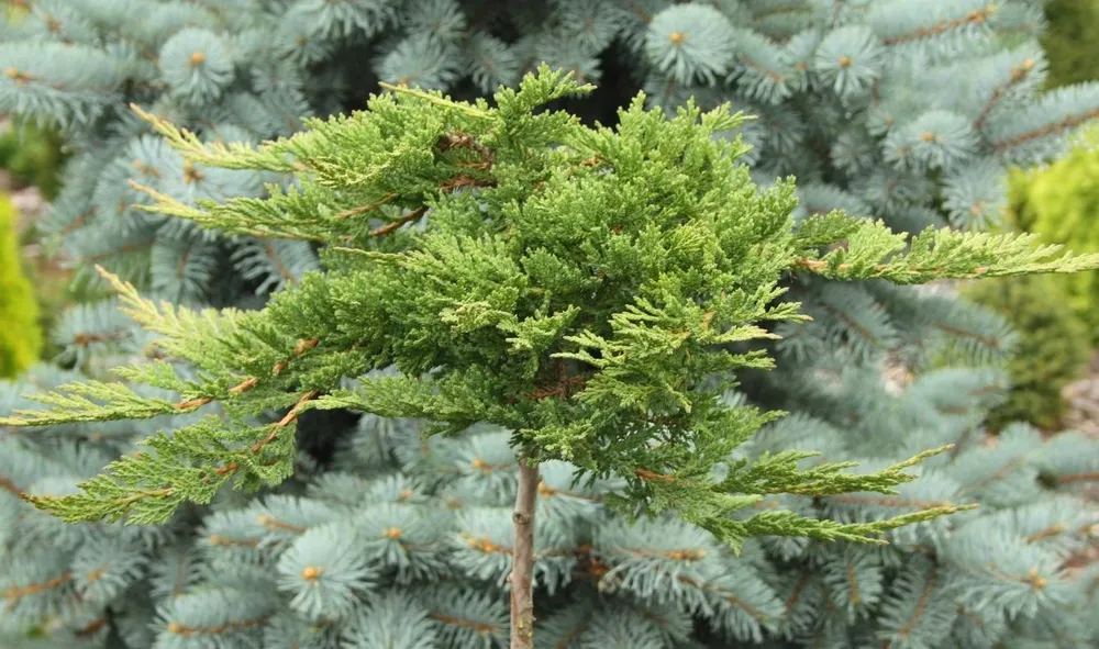 - Сорт Wiltonii отличается более раскидистой формой кроны и более густой листвой.