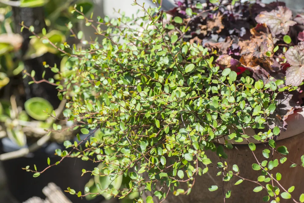 - Muehlenbeckia astonii ‘Nana’: Компактный сорт с мелкими листьями, отлично подходит для контейнерного выращивания.