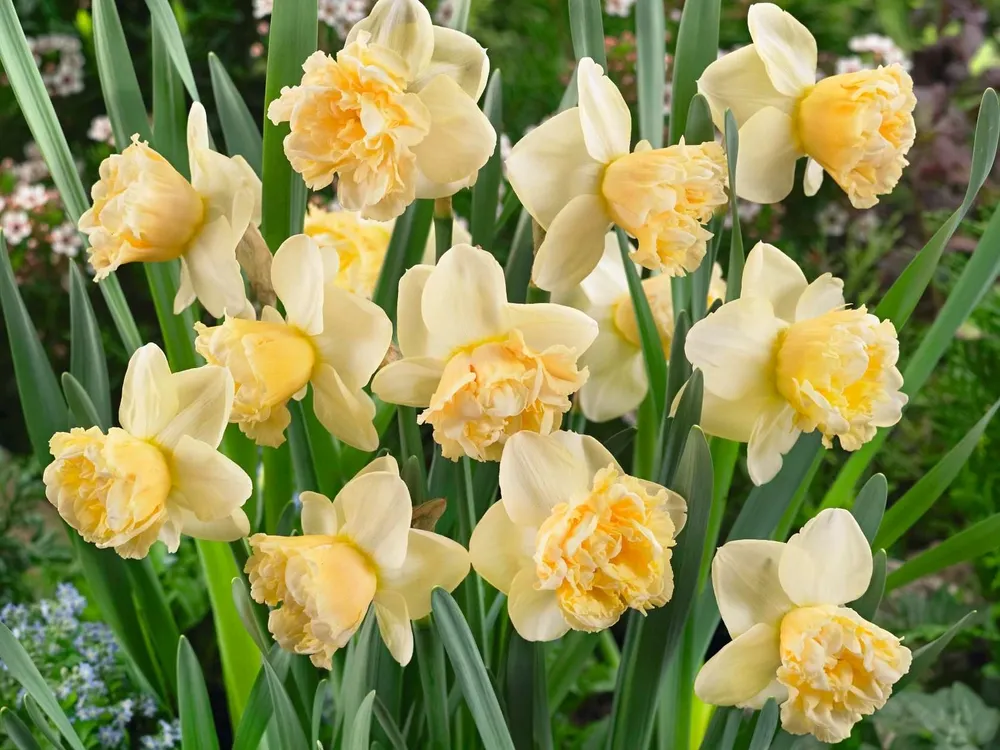 Нарцисс Арт выделяется своими крупными, махровыми цветками насыщенного желтого цвета с белым очагом на внутренней стороне лепестков. Его высота достигает около 60 см, а период цветения приходится на конец весны — начало лета. Сорт отличается высокой морозостойкостью и устойчивостью к болезням.