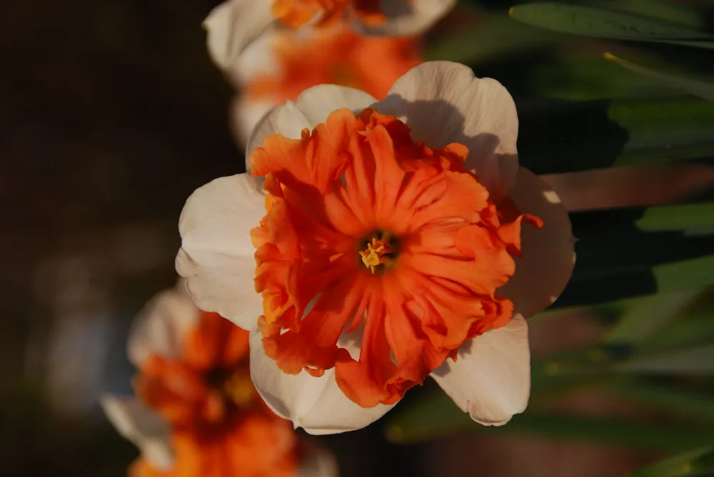 Цветки нарцисса Тамар Файер обладают удивительной окраской – они преимущественно ярко-оранжевые с кремовыми краями. В центре цветка расположена золотистая «шпилька», добавляющая еще один оттенок к его многогранному образу. Цветонос, достигающий высоты до 40 см, удерживает несколько бутонов на одном стебле, что делает куст весьма пышным и декоративным.