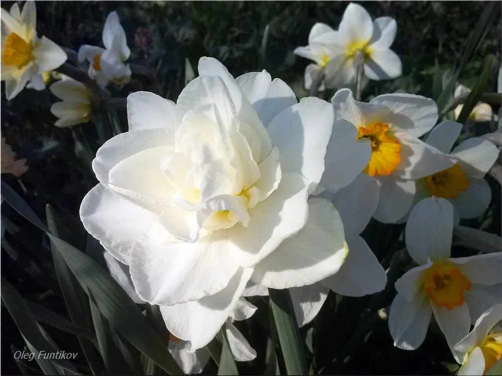 Сорт ‘Ice Follies’, например, также имеет белые цветки, но они более мелкие и простые по форме. ‘Grand Soleil d’Or’ — сорт с яркими золотистыми цветами, которые привлекают внимание своей насыщенностью и контрастностью.
