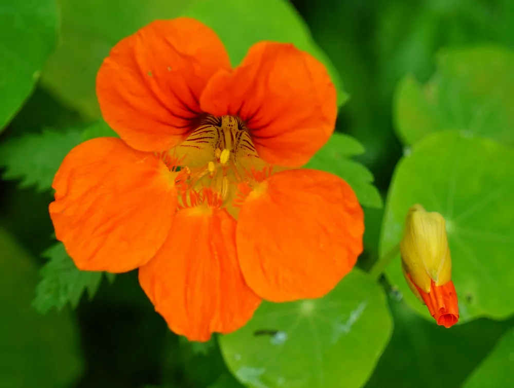 Настурция (Tropaeolum) – это яркая, неприхотливая в уходе и удивительно декоративная однолетняя культура, которая станет украшением любого сада или балкона. Растение родом из Анд Южной Америки, где оно произрастает в горных условиях. Его яркие цветки притягивают внимание пчел и бабочек, а необычные листья с характерным ребристым рисунком добавляют саду экзотики.