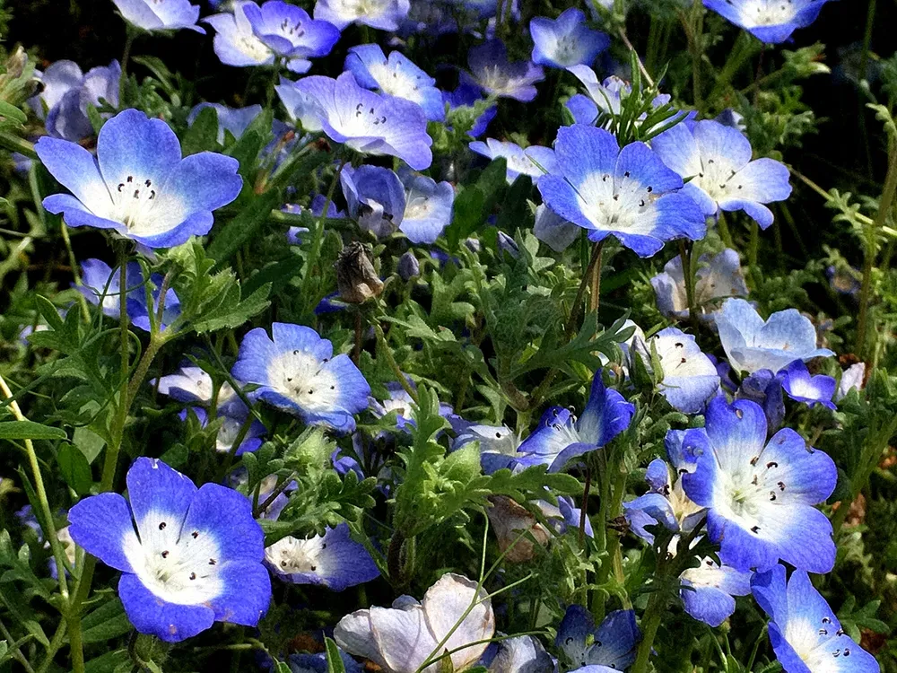 - В полутени Немофила также может расти и цвести, но цветки будут мельче и яркость окраса несколько снизится.