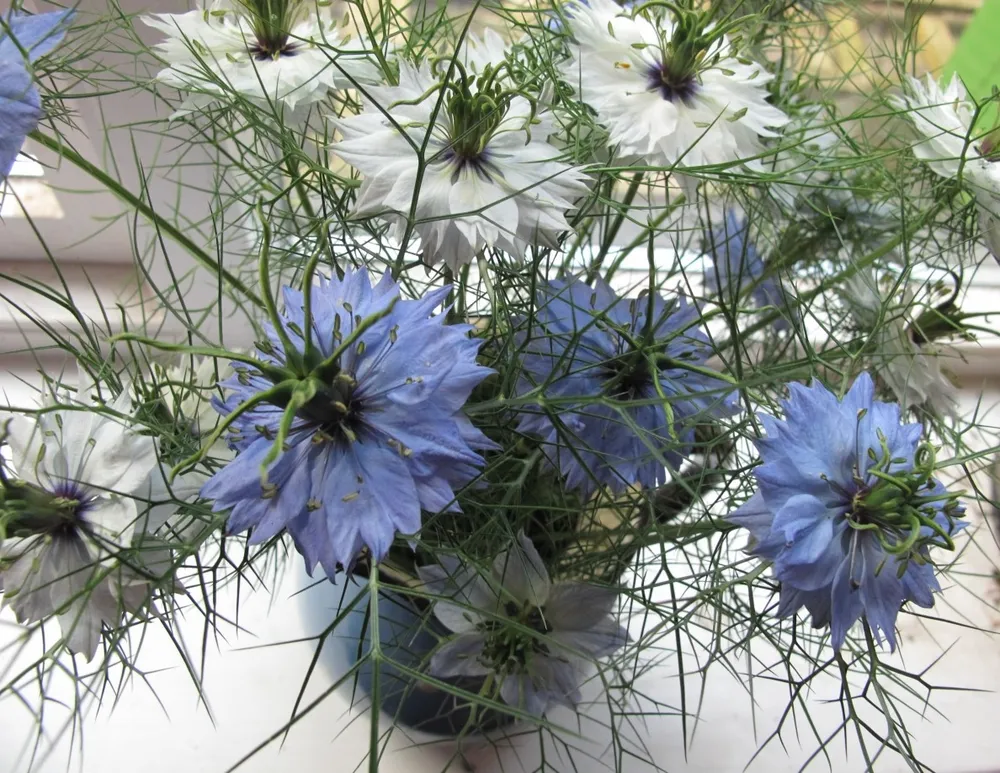 - Nigella hispanica – сорт с более крупными цветками и семянышками.