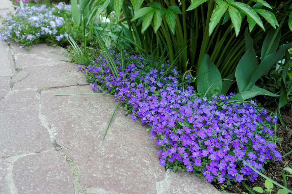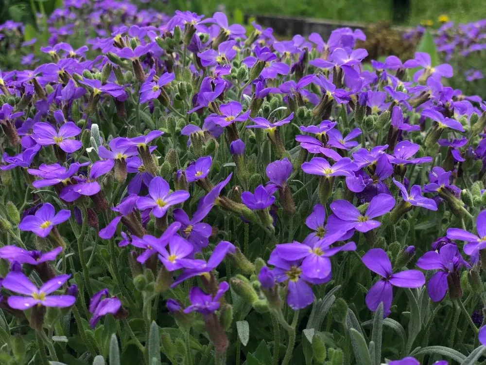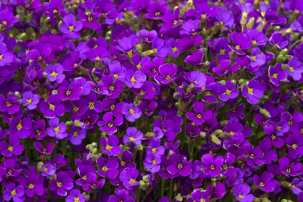 Кемпбелл выделяется среди других сортов обриеты своей обильностью цветения и яркими, крупными цветками.