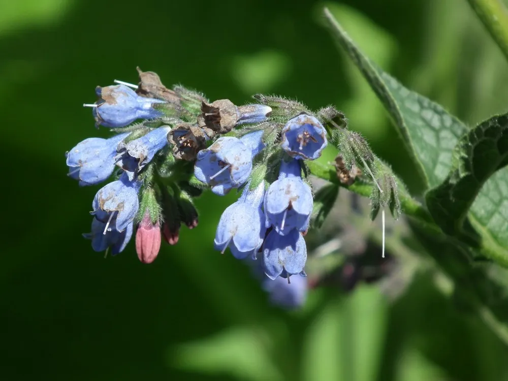 Окопник (Symphytum) – это травянистый многолетник, относящийся к семейству Boraginaceae. На протяжении многих веков его использовали в народной медицине благодаря лечебным свойствам листьев и корней. В садоводстве же его ценят за декоративные качества: крупные листья имеют оригинальный пурпурный оттенок, а цветы собраны в густые соцветия.