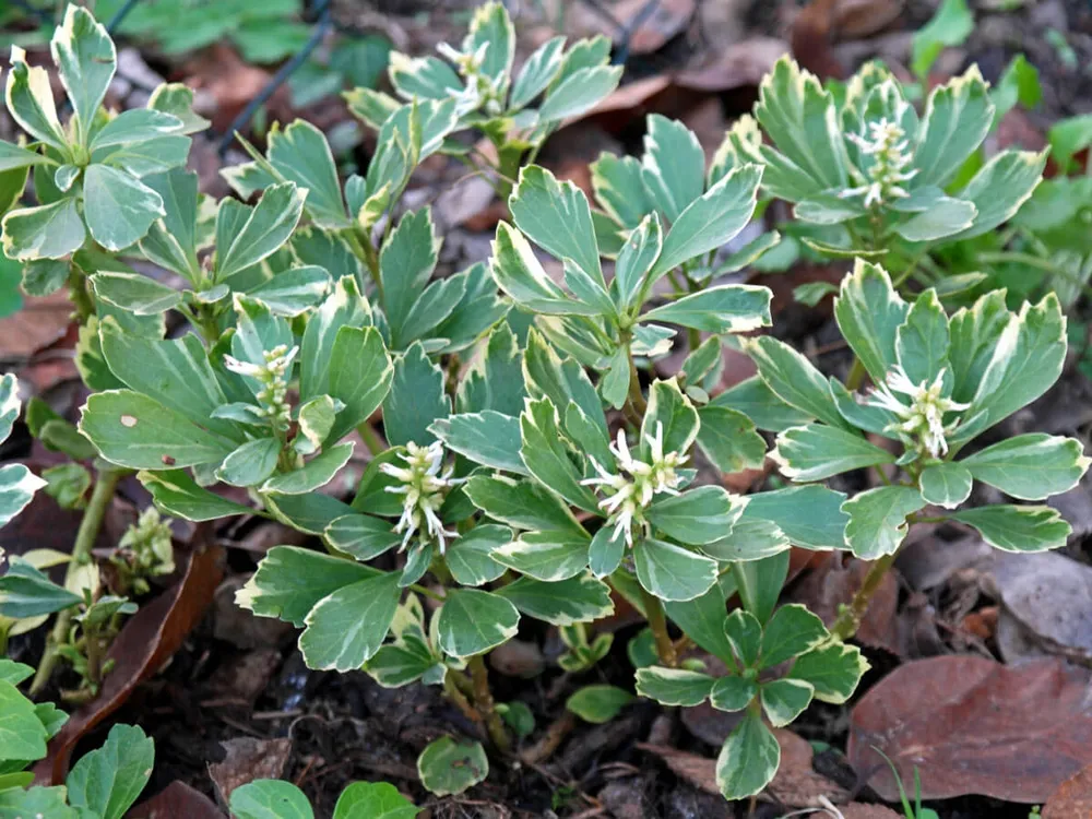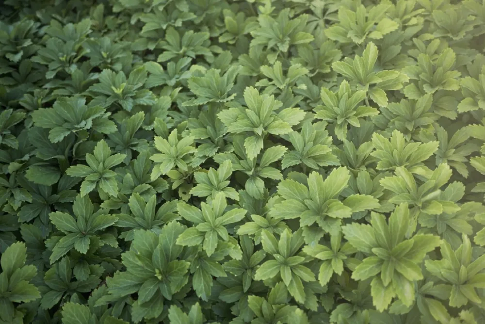 Пахизандра – многолетнее травянистое растение с густыми, вечнозелеными листьями и небольшими цветками, собранными в зонтичные соцветия. Она пользуется популярностью в садоводстве как почвопокровное растение благодаря своей способности быстро разрастаться и создавать плотный ковер из густых листьев.