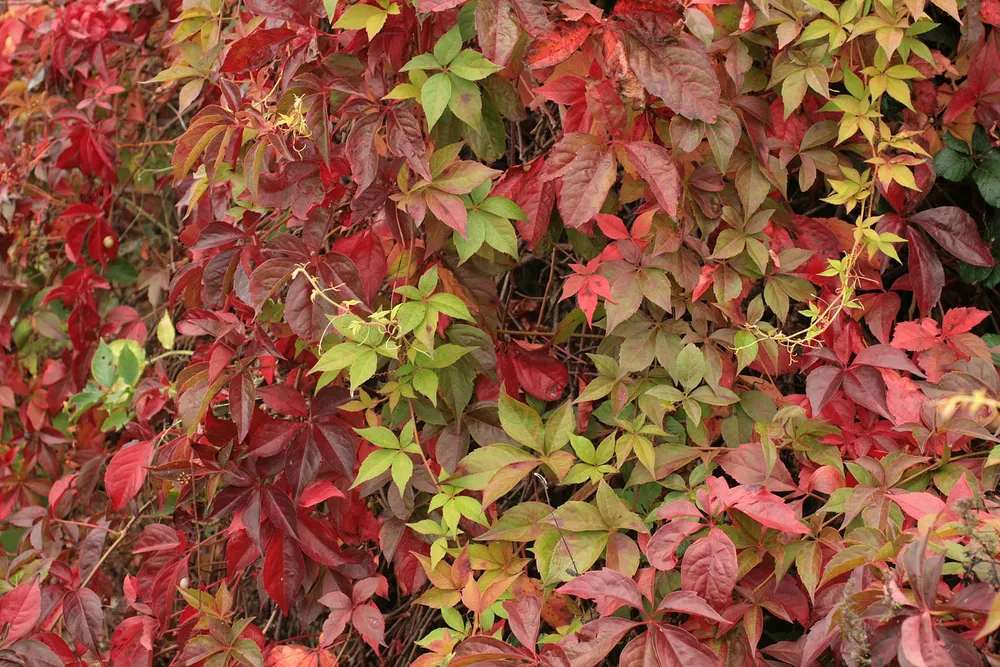 - Партеноциссус ‘Микуши’ отличается яркими красными листьями осенью.