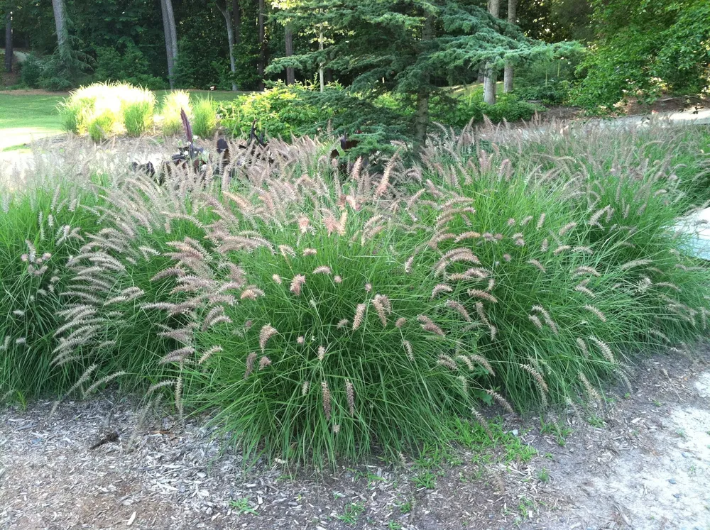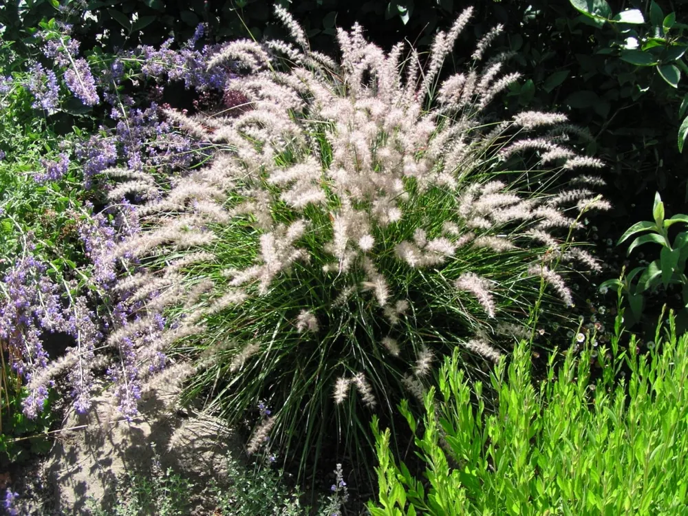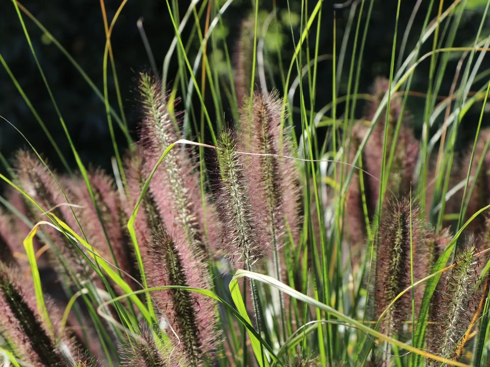 Пеннисетум восточный ‘Фламинго’ отличается от других сортов своей яркой розовой окраской соцветий. Многие сорта обладают белым, красным или пурпурным цветом.