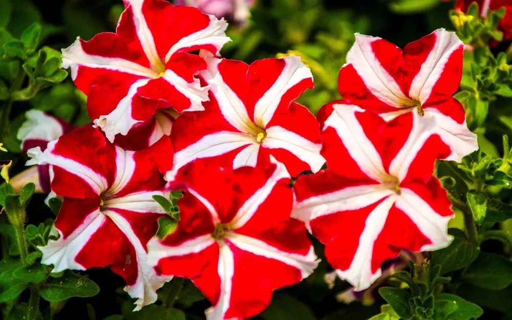 Петуния Красная с белым отличается от других сортов своим ярким контрастным окрасом.