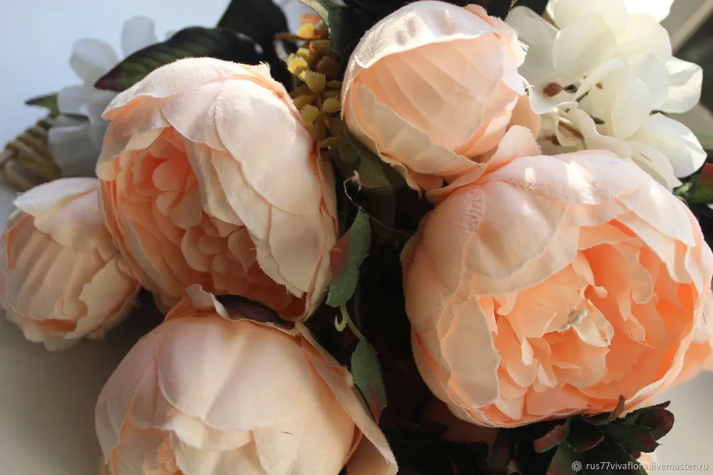Букет Перфект – это настоящий шедевр цветочного искусства. Его цветы поражают своей необычной формой: они крупные, махровые, напоминающие пышные кудри. Окраска лепестков отличается нежностью и изысканностью. Основной цвет – кремовый, переходящий в нежный розовый у основания лепестков. Центральная часть цветка украшена множеством золотистых тычинок, которые придают ему еще больше шарма.
