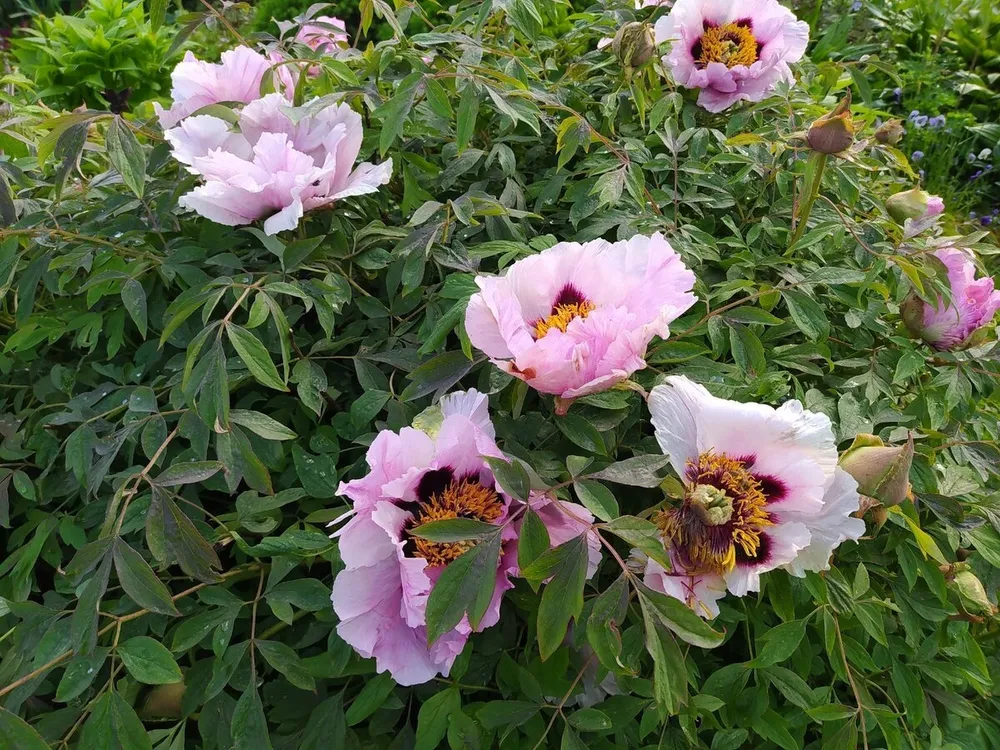 ‘Пепл’ отличается от других сортов древовидных пионов нежно-розовым окрасом лепестков и более компактным размером куста. Например, сорт ‘Sarah Bernhardt’, который также является популярным выбором, обладает крупными белыми цветками с розовым оттенком.