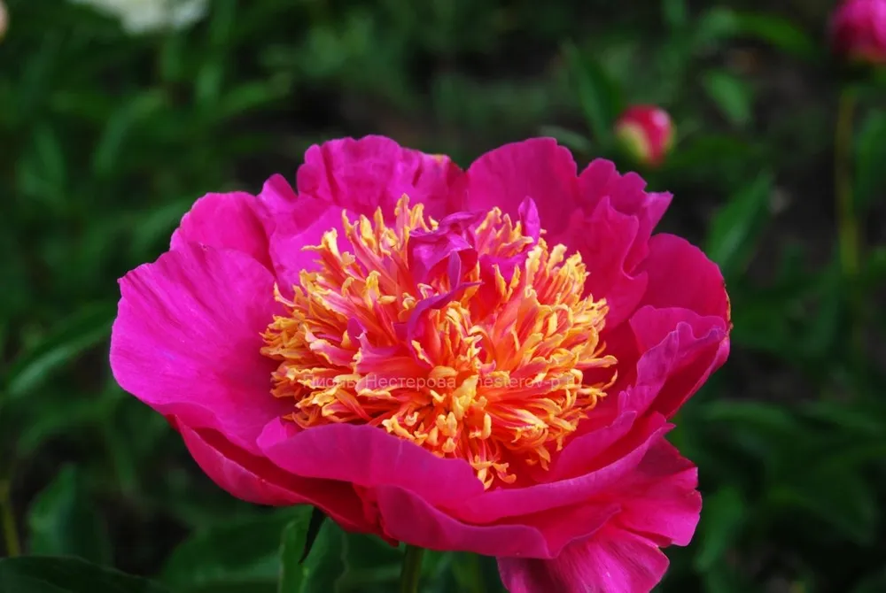 Пион Элиза Ланди предпочитает яркое освещение, хотя может немного переносить полутень.