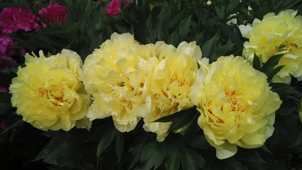 Пион Еллоу выделяется среди других сортов своим насыщенно-желтым цветом. Многие другие сорта пионов имеют более светлые или кремовые оттенки желтого цвета. Например, сорт ‘Butter and Sugar’ имеет кремово-желтые цветки с персиковым отливом, а пион ‘Sarah Bernhardt’ отличается ярко-розовыми цветками, которые в некоторых случаях могут иметь легкий желтый оттенок.