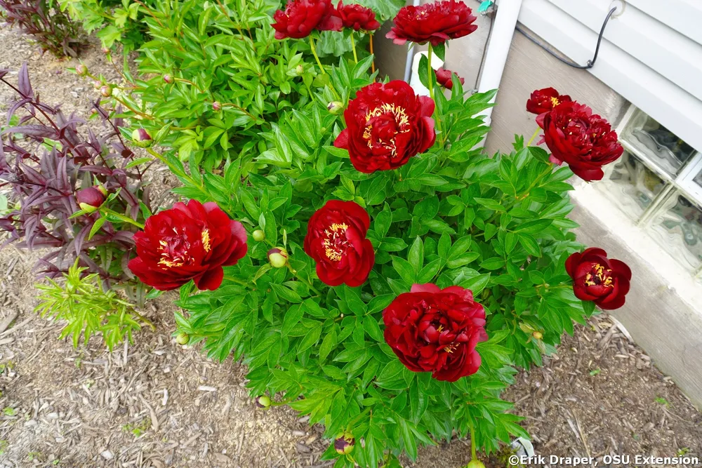 Пионы ‘Гарден Треже’ нуждаются в подкормке для обильного цветения и здорового роста. Лучшее время для внесения удобрений — ранней весной, до начала вегетации, и после окончания цветения.