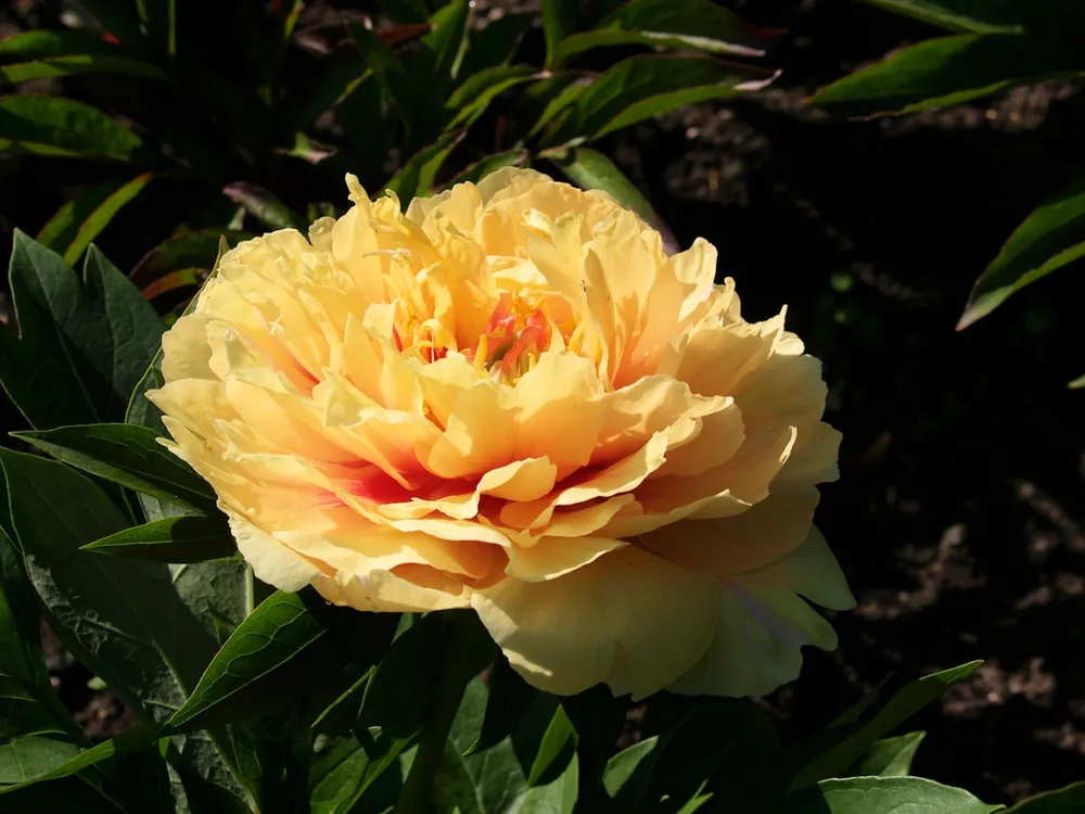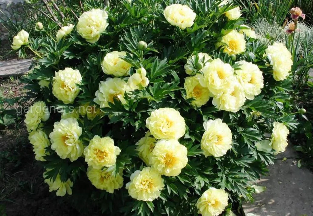 ‘Гарден Треже’, как и большинство пионов, предпочитает солнечные места.