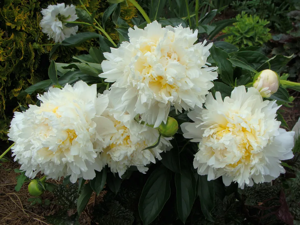 Пионы относятся к растениям-долгожителям и не нуждаются в частой подкормке. Достаточно одного раза весной перед началом роста вегетации внести комплексное минеральное удобрение с содержанием азота, фосфора и калия. В летний период можно проводить два дополнительных внесения жидких удобрений, содержащих микроэлементы.