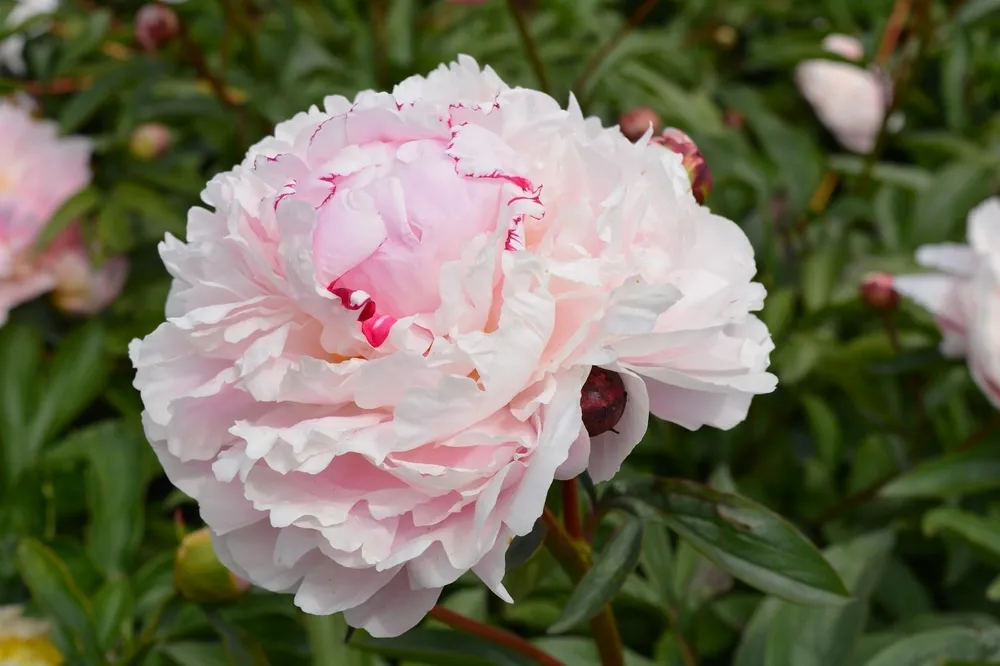 Пионы не нуждаются в частой обрезке. Удалять отмершие цветоносы необходимо после цветения, чтобы растение могло накопить питательные вещества для зимовки. Обрезать листья осенью можно только при сильном увядании или если они поражены болезнями.