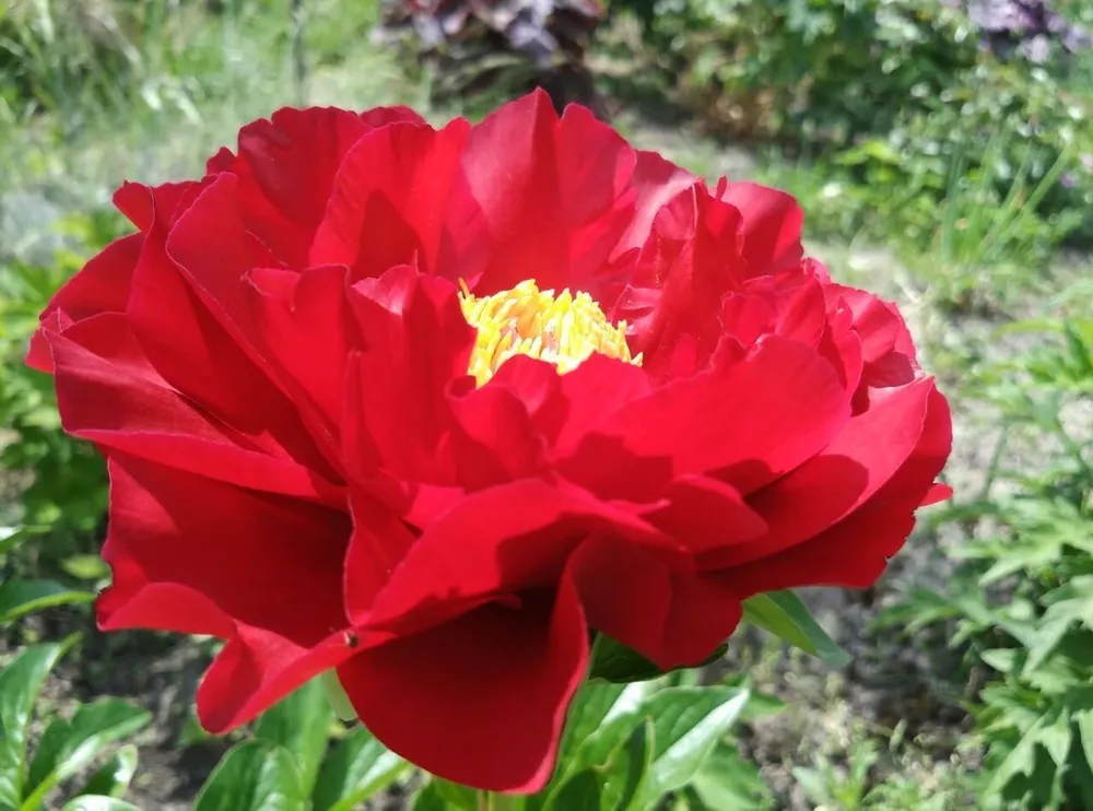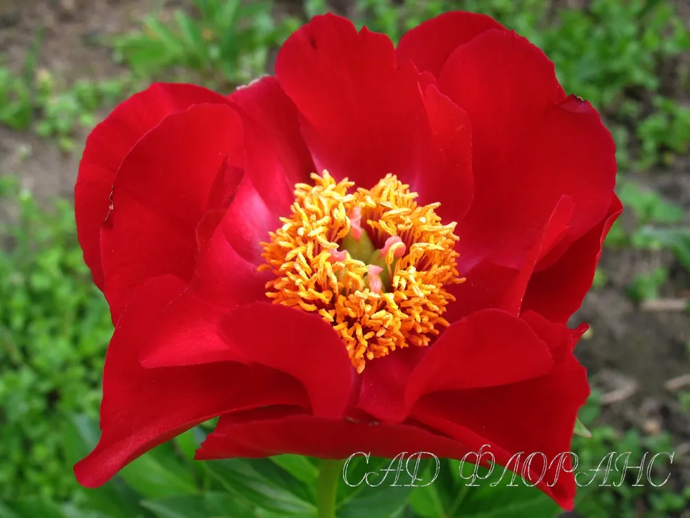 Пион Макинак Гранд отличается крупными, двумя разделами бутонами, которые раскрываются в чашевидные цветки диаметром до 20 см. Лепестки окрашены в насыщенный красный цвет с кремовыми кончиками, создавая поистине королевский вид. Цветение пиона наступает в начале лета и длится около двух недель.