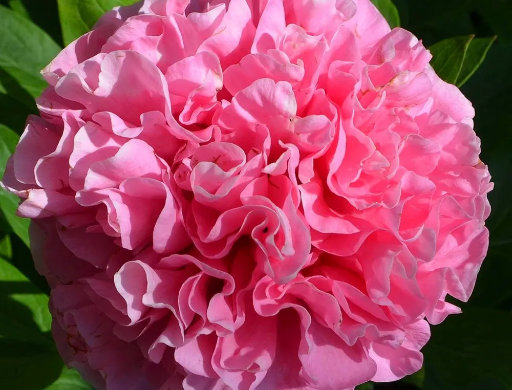 У сорта Ноузгей (Nosegay) листья имеют удивительный контраст: насыщенно-зеленые пластинки с белыми краями. Благодаря этому цвету они выглядят словно будто покрыты снегом, что придает им особую изысканность и романтичность. Цветки пиона Ноузгей также достойны внимания – крупные, махровые, розово-красные с пурпурным отливом.