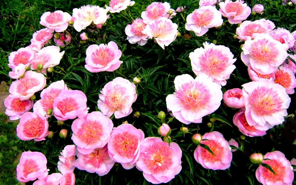- Пион китайский (Paeonia lactiflora) – наиболее распространенный вид, отличающийся обильным цветением и разнообразными окрасками цветков.