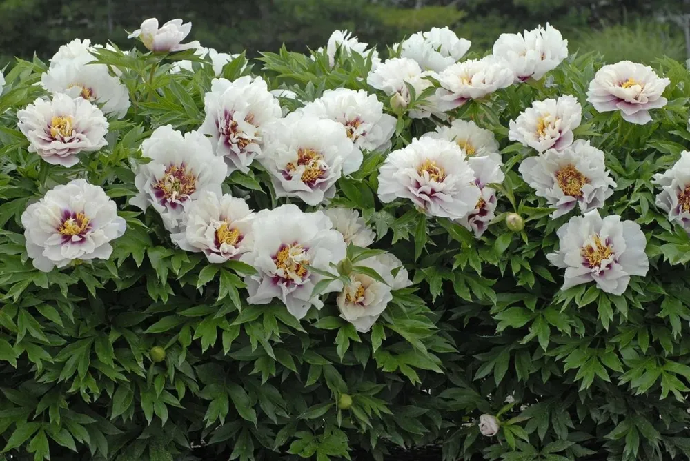 - Пион древовидный (Paeonia suffruticosa) – вечнозеленый вид с крупными, ароматными цветками.