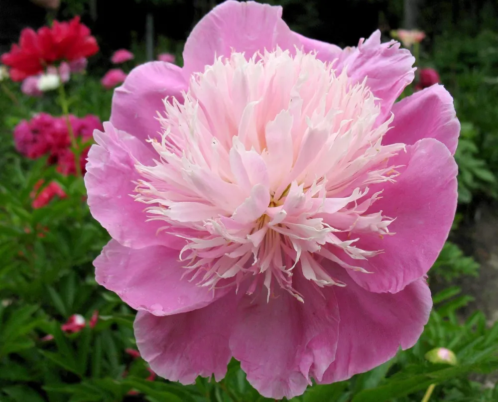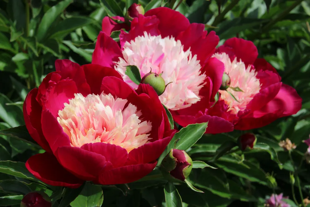 Среди других сортов травянистых пионов Пион Санта Фе выделяется своими крупными цветами и насыщенно-пурпурным цветом. В сравнении с более светлыми или нежными оттенками других сортов, он обладает особой выразительностью.