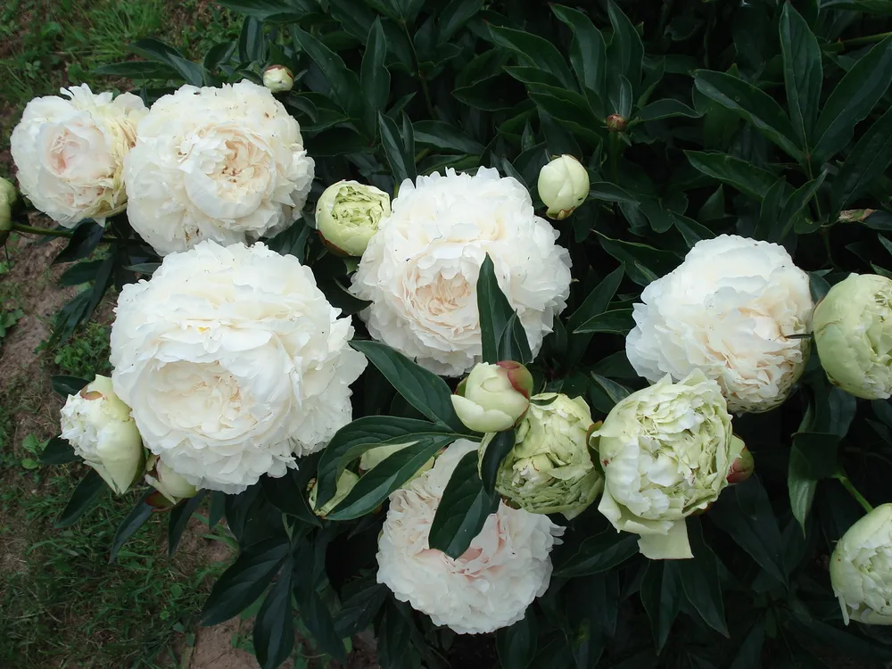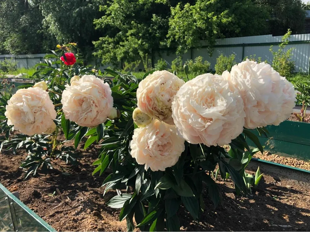Например, пион ‘Sarah Bernhardt’ имеет более крупные и махровые цветки розового цвета, а пион ‘Karl Rosenfield’ – ярко-красные, высокомахровые цветы.