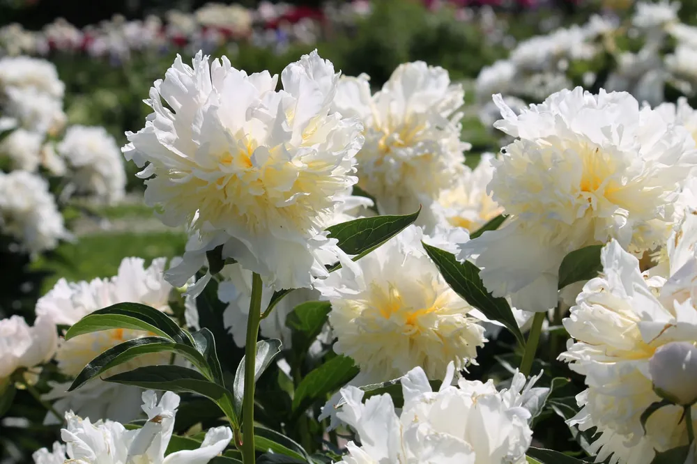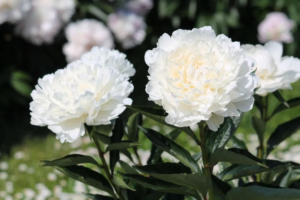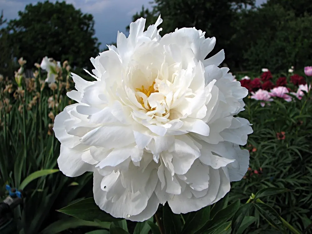 Пион Уайт Дабл выделяется среди других сортов пионов своей исключительной чистотой белого цвета и махровым бутонам. В отличие от некоторых сортов с более яркой окраской, Пион Уайт Дабл обладает нежным, приглушенным тоном, который идеально сочетается с другими цветами в саду.