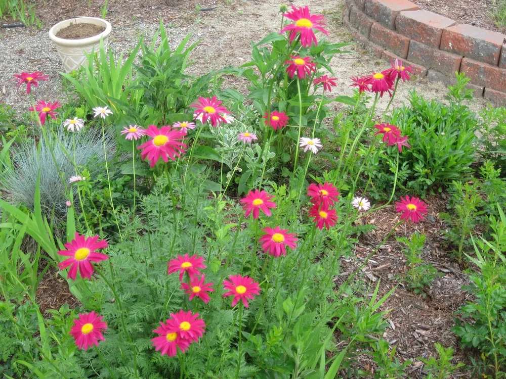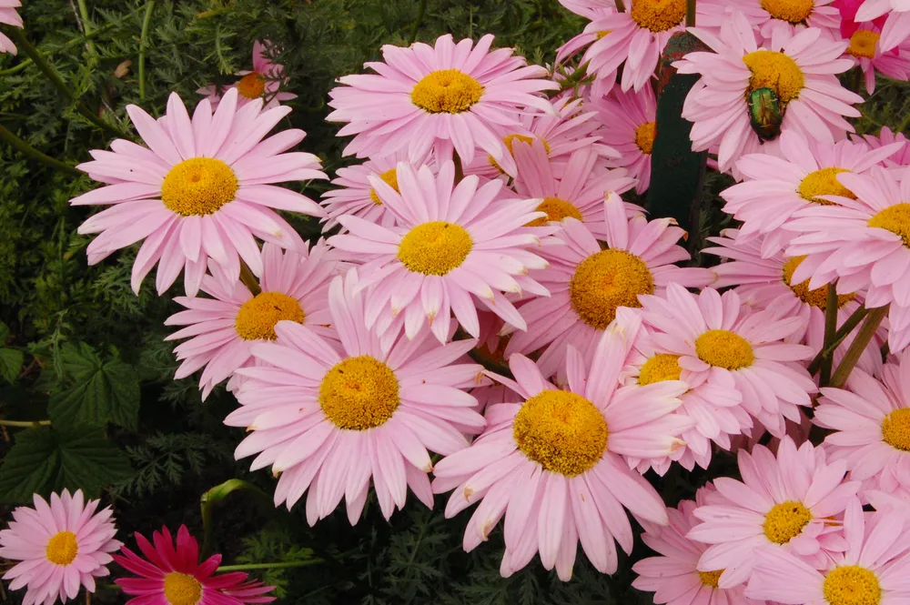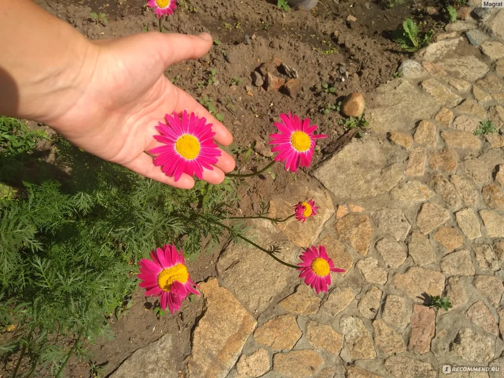 Если пиретрум сильно разросся, можно укоротить его побеги на треть, чтобы он не потерял свою компактность.