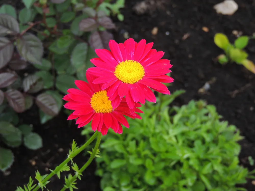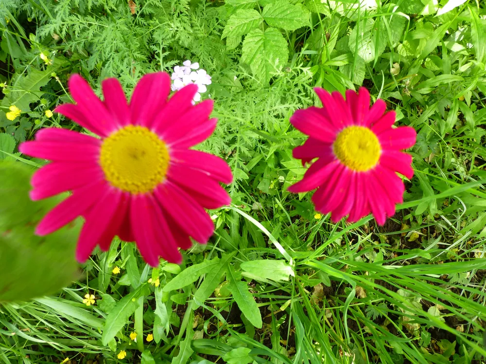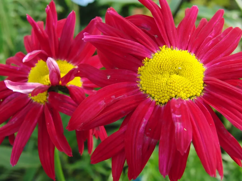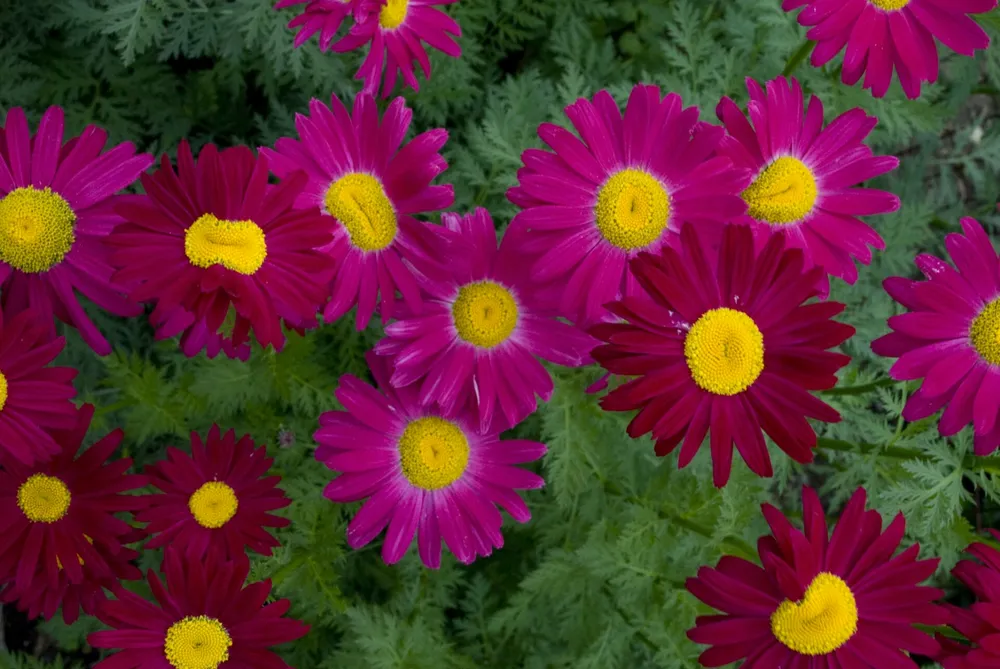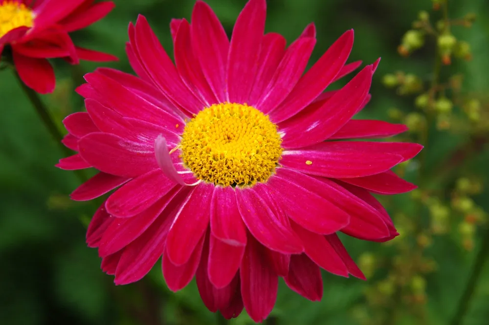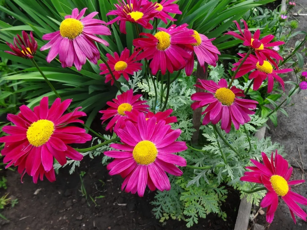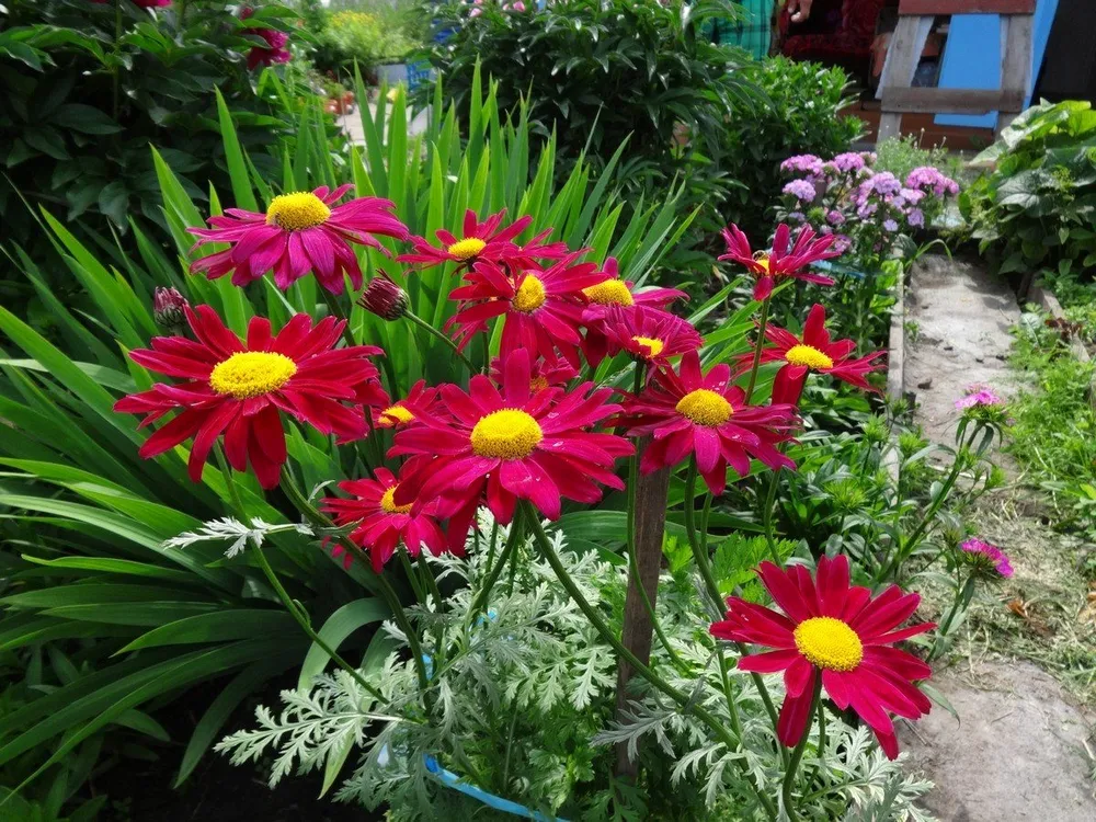 Пиретрум Робинсон Ред выделяется среди других сортов пиретрума своей яркой красной окраской.