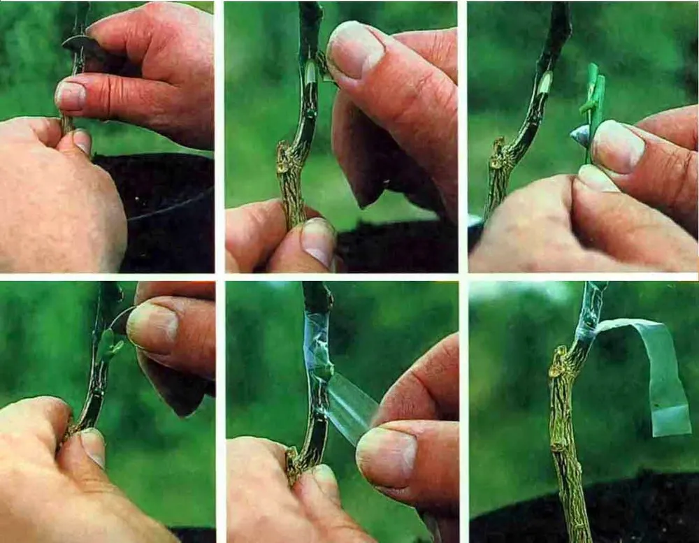 - Копулирование: Этот способ подходит для однолетних саженцев. Обе части (привой и подвой) обрезаются под углом, а затем соединяются друг с другом.