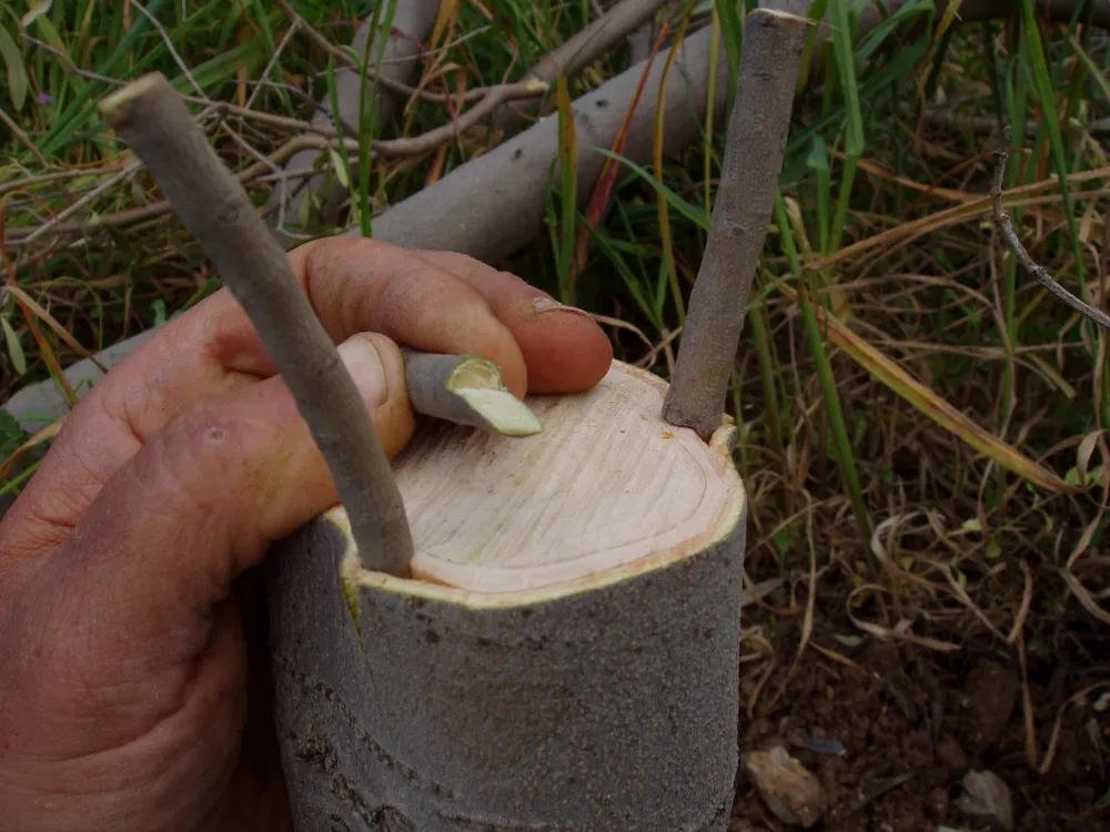 - Подготовка привоя и подвоя: Привой должен быть здоровым и крепким. Подготовьте его заранее, срезав верхушку с несколькими почками. Подвой выбирают с хорошо развитой корневой системой и без признаков болезней.