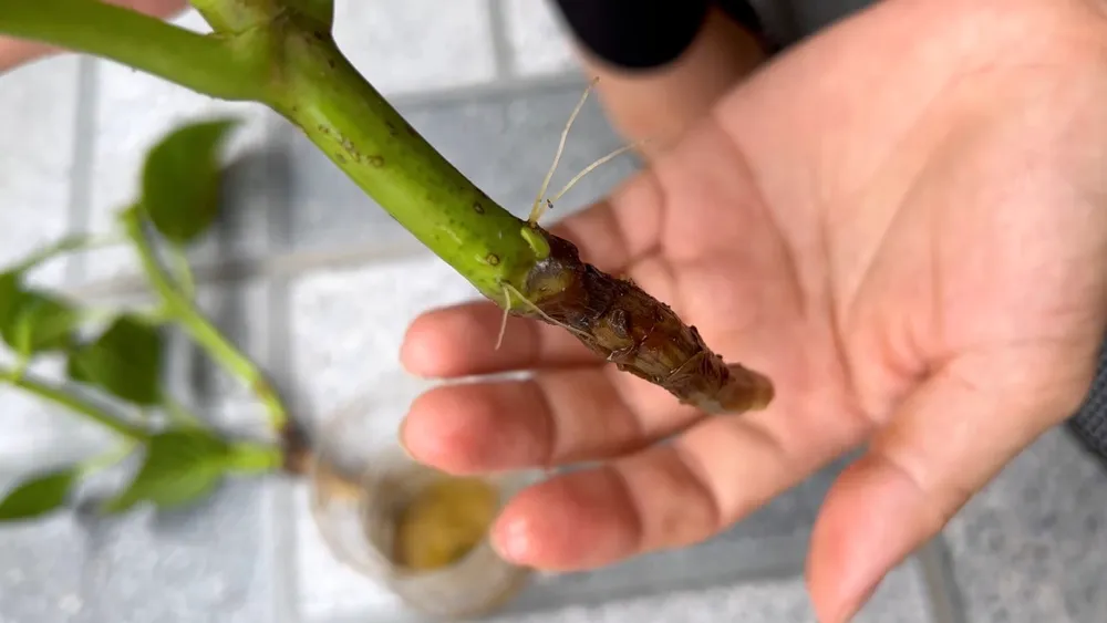- Обработка и посадка: Нижний срез черенка нужно обработать стимулятором корнеобразования, а затем поместить его в субстрат из песка и вермикулита. Почву необходимо поддерживать влажной, но не заливать.