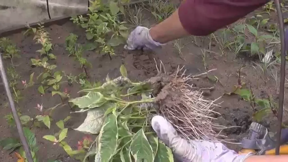 - Подготовка к делению: Выкопайте весь куст из земли, аккуратно отделяя корни и побеги.