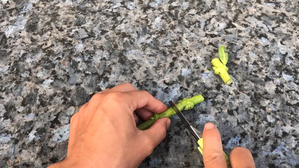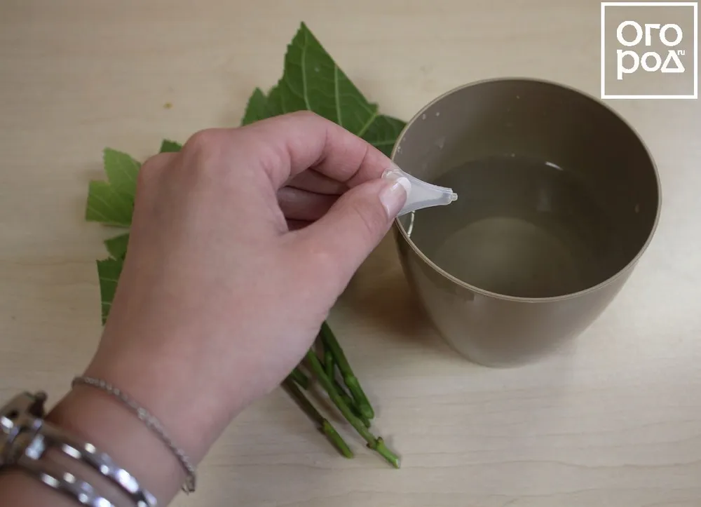 - Выбор побега: Для отводков выбирайте здоровый, гибкий побег, который достигает длины около 30 см.