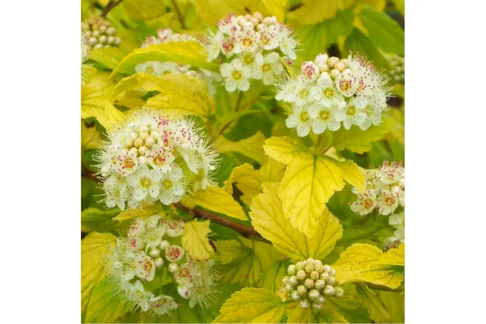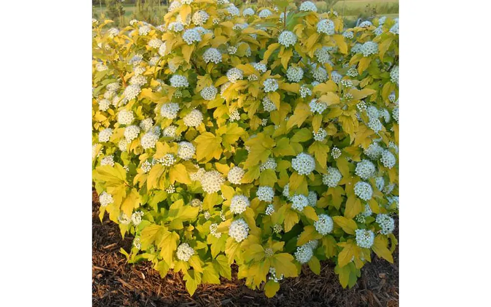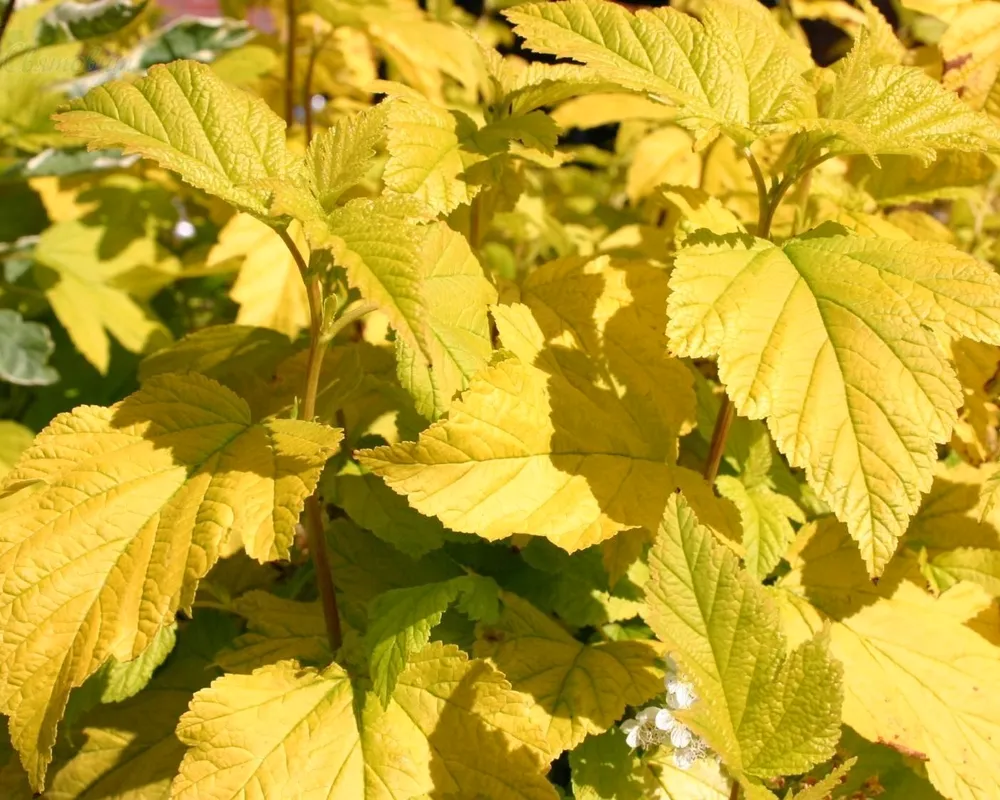 Среди сортов пузыреплодника калинолистного ‘Дартс Голд’ выделяется своим насыщенным золотистым окрасом листьев, который сохраняется на протяжении всего сезона.