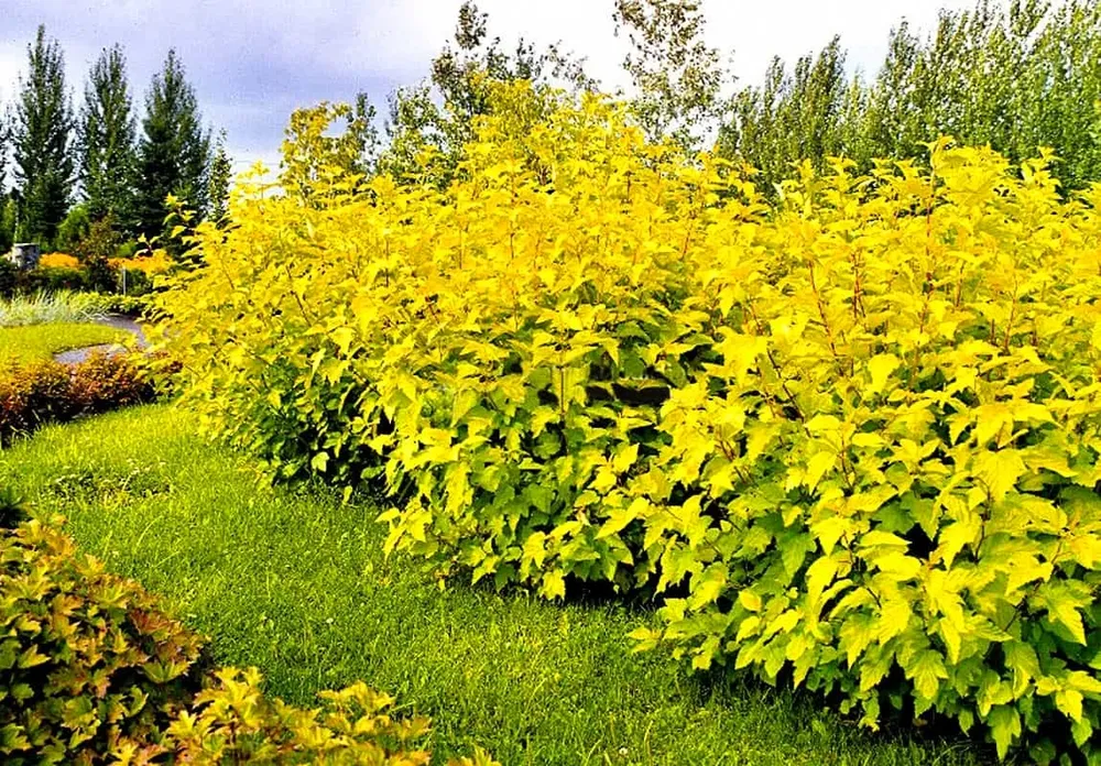 Пузыреплодник калинолистный ‘Дартс Голд’ может расти в форме естественной кустовой кроны или быть подстриженным для придания желаемой формы.