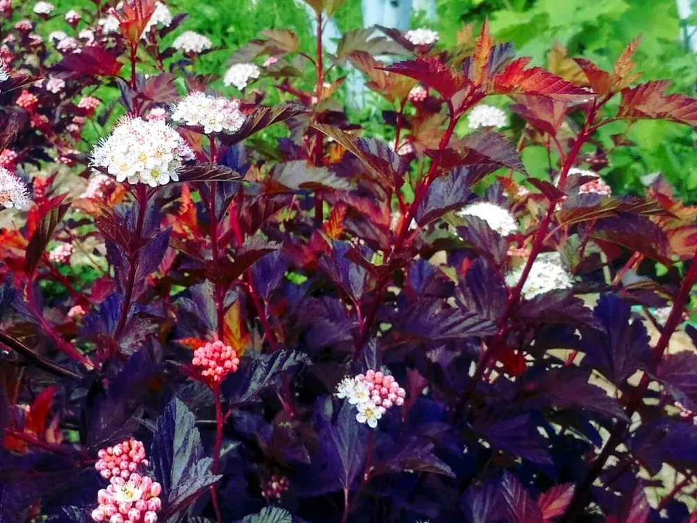 Среди широкого разнообразия сортов пузыреплодников можно выделить несколько наиболее популярных: * **«Роуз Фейри»** — сорт с розовыми цветками, имеющими приятный аромат. Высота куста достигает 2-3 метров. * **«Alba»** — классический сорт с белыми цветами. Куст высотой до 4 метров отличается высокой зимостойкостью и неприхотливостью к условиям выращивания. * **«Виолетта»** — сорт с пурпурно-фиолетовыми цветками, добавляющими особый шарм садовому участку.