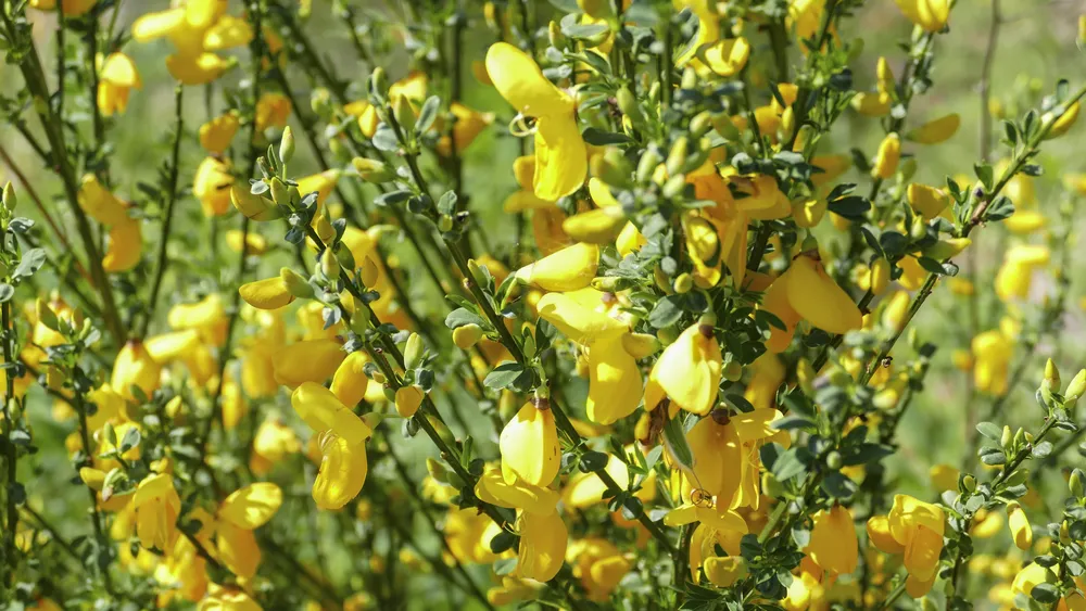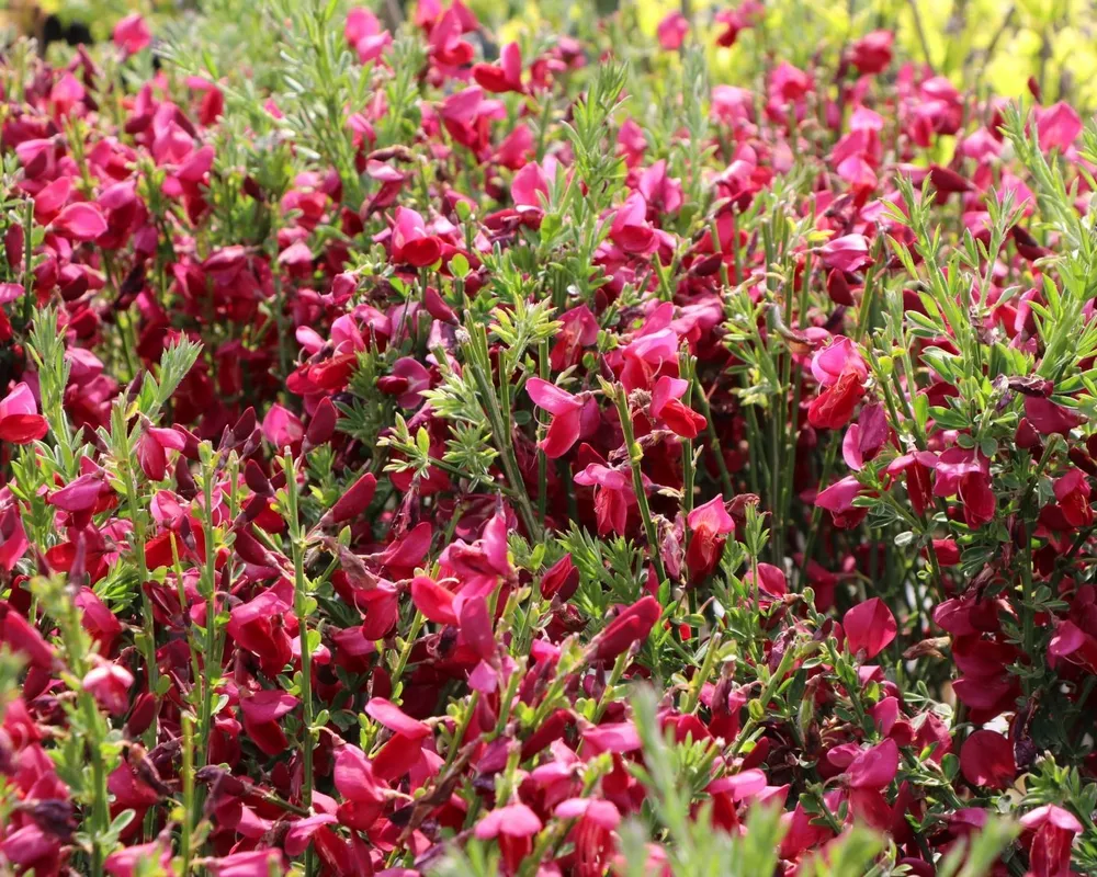Ракитник Боскоп Руби представляет собой компактный кустарник с густой листвой и яркими, насыщенно-красными цветами, которые создают потрясающее зрелище.