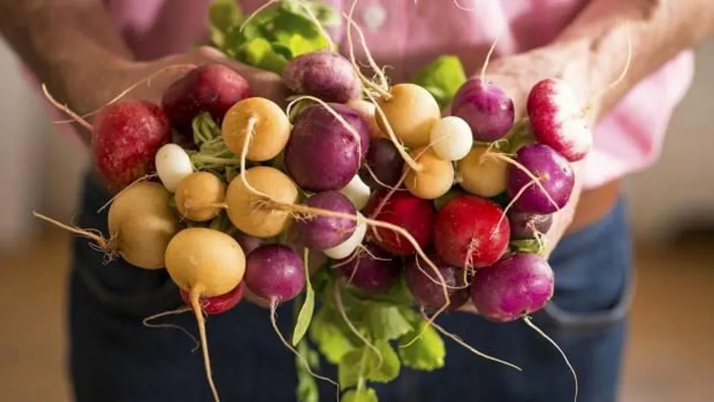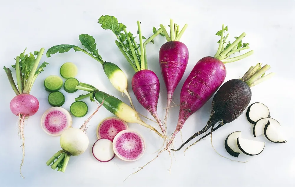 Редис цветов – это удивительный сорт, который выделяется среди своих собратьев не только яркой окраской корнеплодов, но и необычным вкусом. Этот редис привлек внимание любителей-садоводов уже в середине прошлого века благодаря своей уникальной способности менять окраску корней в процессе роста. От белого до розового, фиолетового, красного, а иногда даже с переходами – каждый плод словно маленькая картина из множества оттенков. Редис цветов — это не просто красивый овощ, но и ценный источник витамина C, клетчатки и других полезных веществ. Его универсальность в кулинарии делает его желанным гостем на любом столе.