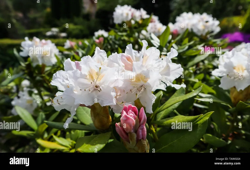 Рододендрон Cunningham’s White выделяется среди других сортов своим необычайно белым цветением. В то время как многие другие виды рододендронов имеют розовые, красные или фиолетовые цветки, Cunningham’s White сохраняет свою чистоту и нежность в течение всего сезона цветения.
