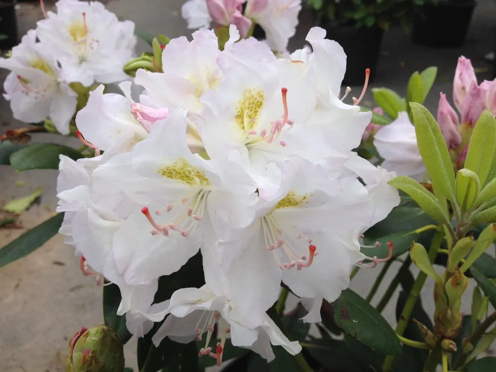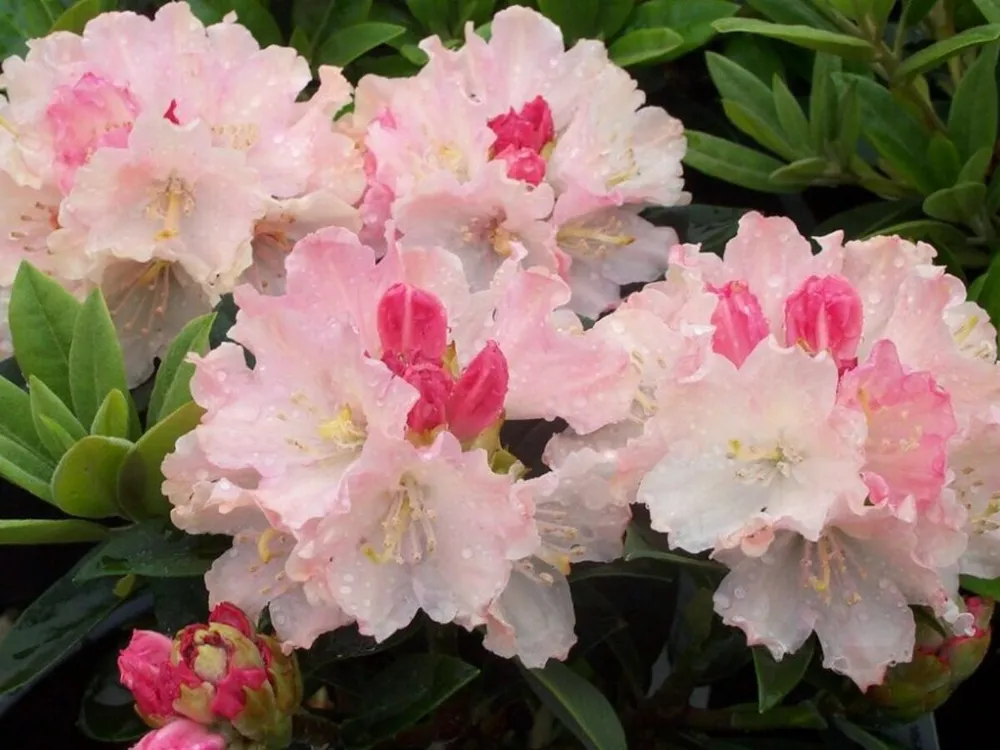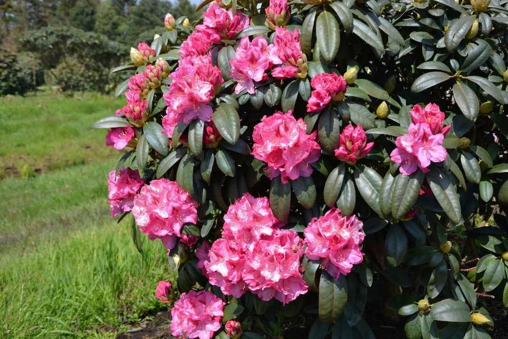 Роберт де Белдер – это гибрид рододендрона канадского и азиатского. Его особенность – невероятно яркие, насыщенно-красные бутоны с розовым отливом. Крупные, махровые цветки собраны в соцветия по 5-8 штук. Цветение обильное, длится около 3-4 недель в конце весны — начале лета.