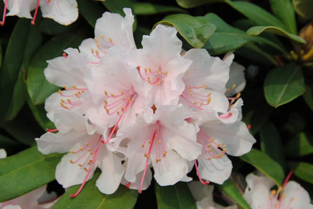 Рододендрон Штернцаубера – это замечательный кустарник, который покоряет сердца цветоводов своей элегантностью и неприхотливостью. Представляет собой гибридный сорт, выведенный в результате скрещивания рододендрона канадского и японского видов. Благодаря этому кросс-популяции Штернцаубера обладает лучшими качествами обоих родителей – зимостойкостью и яркими цветами. Сорт отличается густыми побегами, на которых формируются соцветия из 6-8 крупных цветков белого или бледно-розового цвета с желтоватыми серединками. Цветение длится в течение всего лета, начинаясь в июне и продолжаясь до середины августа. Куст достигает высоты около 1 метра и такой же ширины, что позволяет ему прекрасно смотреться как в одиночных посадках, так и в групповых композициях.
