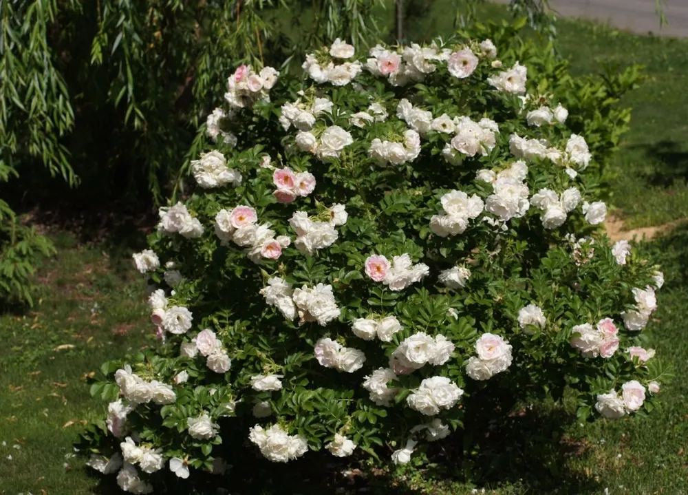 Роза Аве Мария – это представитель группы чайно-гибридных роз. Она отличается высокорослым кустом, который достигает в высоту 120-150 см и имеет ширину около 80-90 см. Цветки розы крупные, махровые, с волнистыми лепестками кремово-белого цвета. В бутонах проявляется нежный розовый оттенок, который становится все более выраженным по мере раскрытия цветка.