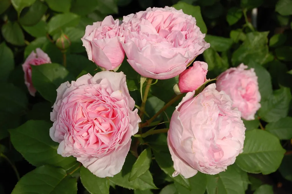 Это невероятно ароматная роза с пышными махровыми бутонами насыщенного розового цвета. Ее густые лепестки образуют роскошные цветки, которые раскрываются по одному или небольшими группами, создавая впечатление непрерывного цветения.