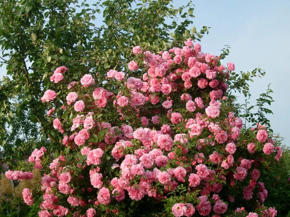 Роза Фронтенак может быть как свободно растущим кустом, так и формованным в определенную фигуру.