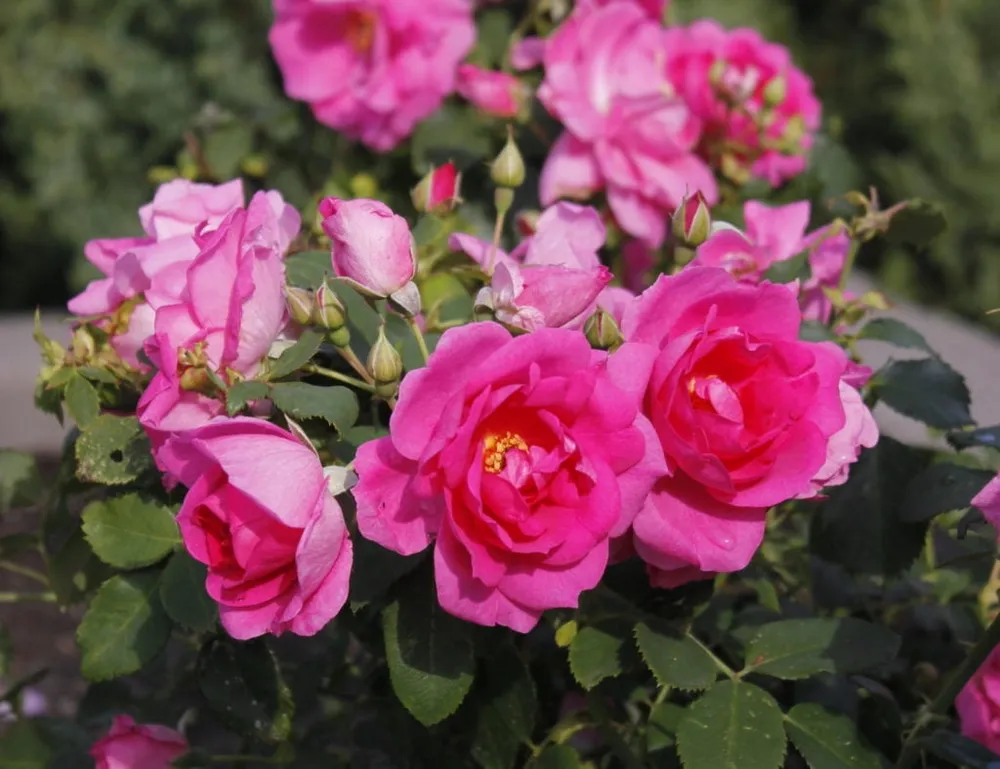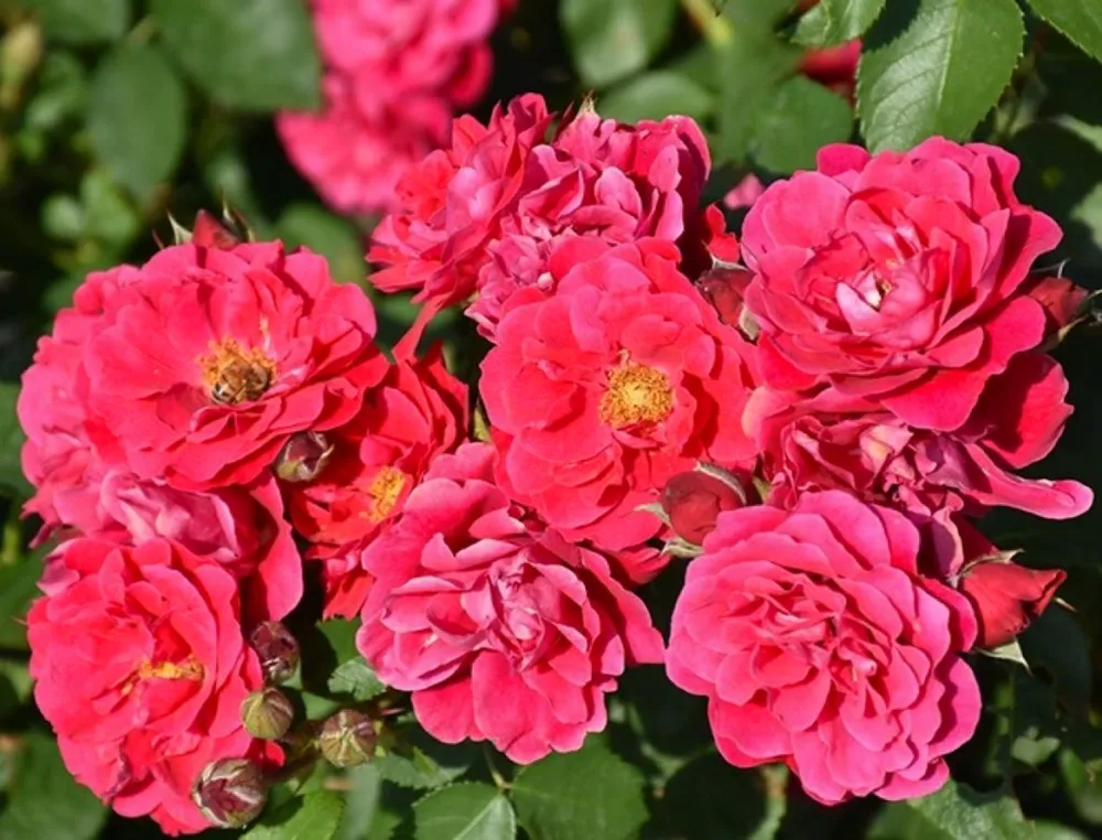 Фронтенак отличается от многих других сортов розами своими изящными, высокорасположенными цветками-корзинкам и насыщенной окраской.