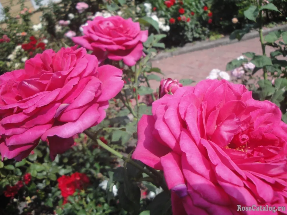 Эта роза поражает своей элегантностью и изысканностью. Она представляет собой классический чайно-гибридный сорт с крупными махровыми цветками до 12 см в диаметре, собранными по 3-5 штук в соцветие. Цветки обладают нежным ароматом и сохраняют свою свежесть даже при сильной жаре. Цветение продолжительное, начинаясь в июне и продолжающееся до сентября. Листья темно-зеленого цвета, блестящие, с глянцевой поверхностью.
